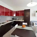 Gasten kunnen gebruik maken van een kitchenette met een magnetron, een koelkast en keukengerei, eveneens koffie- en theevoorzieningen beschikbaar op locatie. Dit appartement heeft ook ledikanten en kinderstoelen voor kinderen.